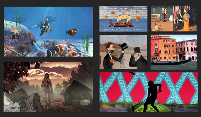 Hoy en día nos llegan infinidad de videos virales en redes que animan La Monalisa o El Cielo Estrellado de Van Gogh seguramente gracias a la IA. Sin embargo, cuando empezamos a proponerle esta técnica a varios expertos y curadores de Museo del Luxemburgo de París en 2003, muy pocos habían visto una obra de arte animada, excepto tal vez en cortos experimentales aislados, y nos miraban incrédulos. Para nosotros era simplemente la forma más natural de hacer que las obras hablaran directo al corazón de los visitantes. Esta técnica, de la que fuimos pioneros en su aplicación para la divulgación del arte y el patrimonio, fue inaugurada en la película sobre Botticelli que estrenamos en 2003 (ver más abajo en esta página). Esta forma de divulgación gracias a la narración de historias y al uso innovador del video y la animación, se volvió nuestro perfecto laboratorio de investigación para convertir muchas aburridas visitas de museo y lugares patrimoniales en aventuras emocionantes. Un know-how que hemos aplicado durante 24 años en cientos de producciones y que hoy nos permite ayudar a todo tipo de clientes que necesitan conectar con sus audiencias.